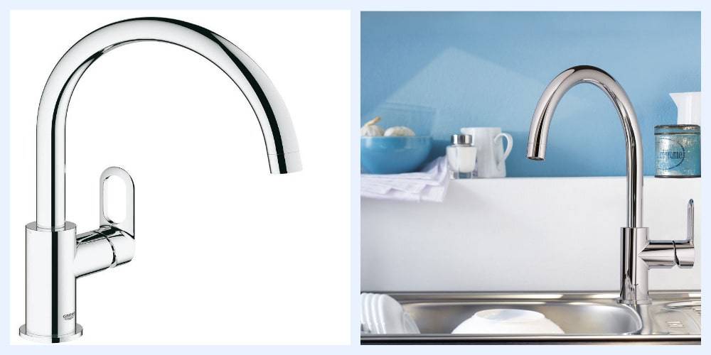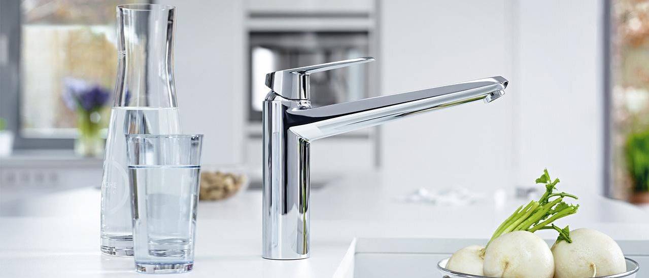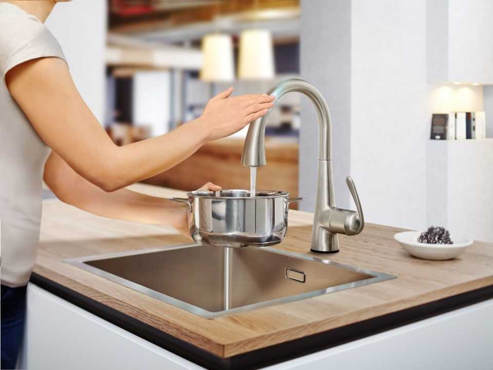 Можно смонтировать любые краны Грое для кухни, при условии, что вода не разбрызгивается, легко включается и выключается.