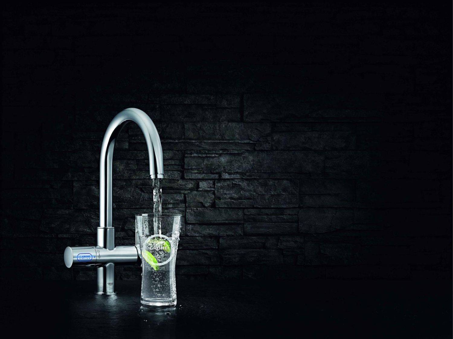Grohe также заботится об окружающей среде и помогает клиентам отказаться от воды в бутылках. Это благодаря технологии Blue, которая удаляет из воды вещества, ухудшающие ее вкус. Это делает ненужной покупку напитков в бутылках или отдельных кувшинов с фильтром. Один картридж позволяет очистить до 3000 литров воды, а его замена не вызывает затруднений.
