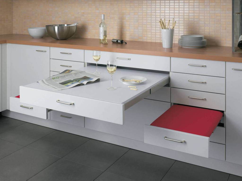 Мебель для маленькой кухни должна иметь вместительные ящики