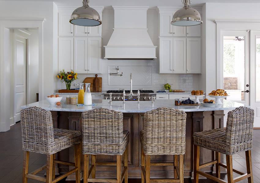 Сегодня барная стойка – один из самых популярных способов разделить пространство, причем использоваться она может как на обычных кухнях, так и в кухнях-гостиных. Естественно, это вариант не для самых маленьких кухонь, но для многих более-менее просторных помещений очень хорошо подойдет.