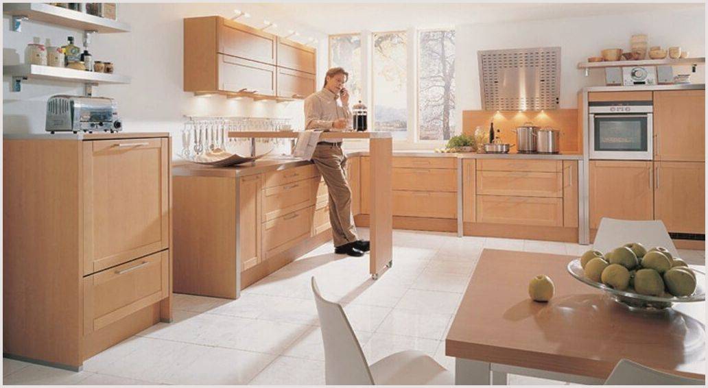Совмещенные модели продолжают стол или рабочую поверхность нижней части гарнитура. В этом случае стойка и столешница кухонного гарнитура располагаются на одном уровне. Их высота по стандарту составляет 85-90 см.