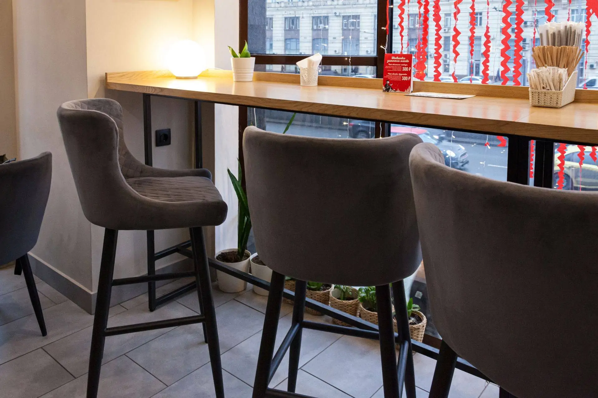 Высота определяется уровнем подоконника. Альтернатива – не трогать подоконник, установив выше столешницу на 20-30 см выше. Тогда необходимо будет лишь подобрать подходящие стулья.