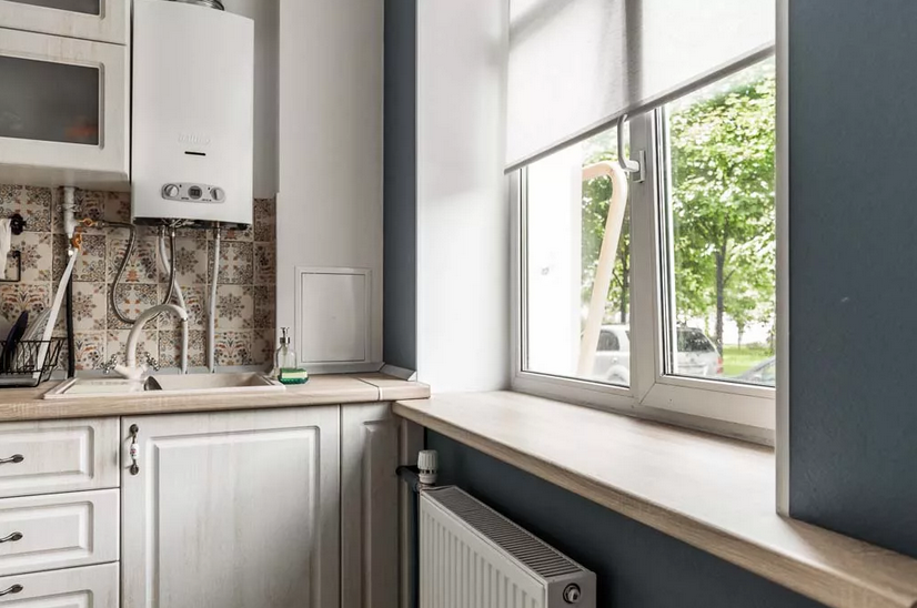 При установке новой мебели нужно заранее обговорить размеры и месторасположение шкафа под котел. Также учитывается разводка коммуникаций, которые при желании можно спрятать.