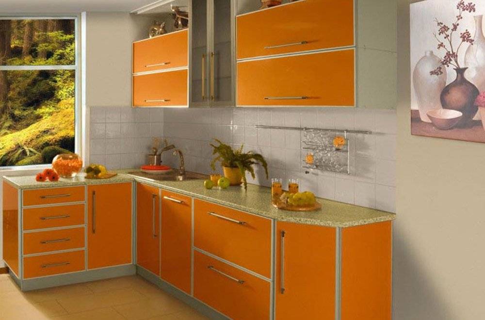 Маленькая кухня в оранжевом цвете