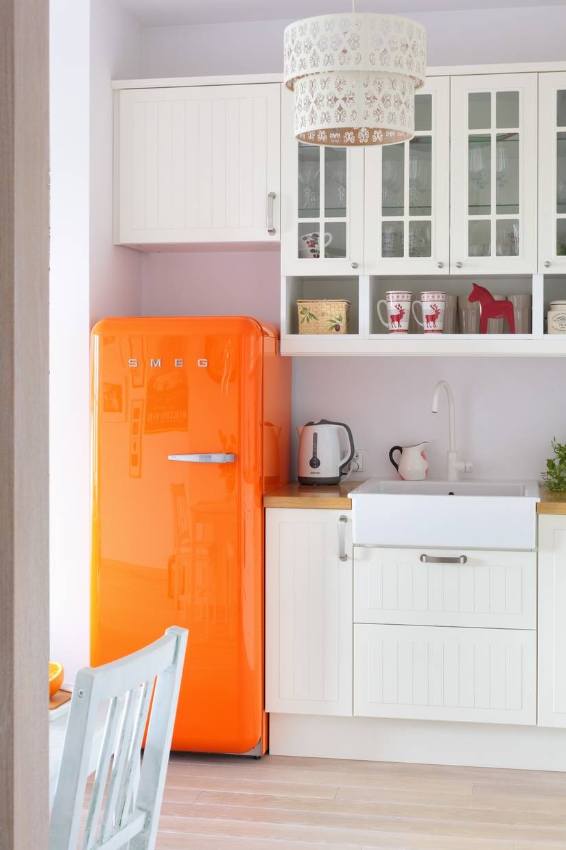 нотку свежести можно внести в оранжевую кухню, дополнив ее цветом фуксии или перца чили;