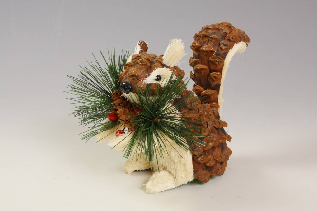 Из еловой шишки можно сделать забавного зайчика. Сперва лепим из пластилина 4 лапки: ножки и ручки. Приклеиваем их к туловищу-шишке. Сзади приклеиваем небольшой шарик-хвостик. Голову зайчика делаем из каштана. Для нее лепим глазки, носик, щечки и ротик. Приклеиваем все на каштан. На щечки приклеиваем по 3 иголочки с каждой стороны — это будут усы зайчика. Ушки делаем из кленовых «пропеллеров» — их нанизываем также на пластилин.