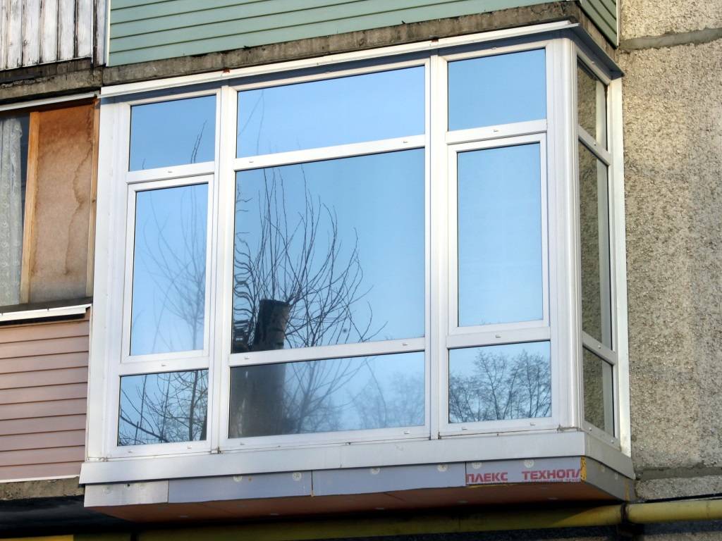 Для утепленного варианта необходим минимум двойной стеклопакет. Количество открывающихся створок в этом случае должно быть минимальным, чтобы сохранялось тепло. К тому же толщина глухих проемов меньше, чем у распашных. Окна со специальными вставками утеплителя надежнее. Остекление балкона в хрущевке с крышей металлопластиком потребует обязательного дополнительного укрепления плиты.