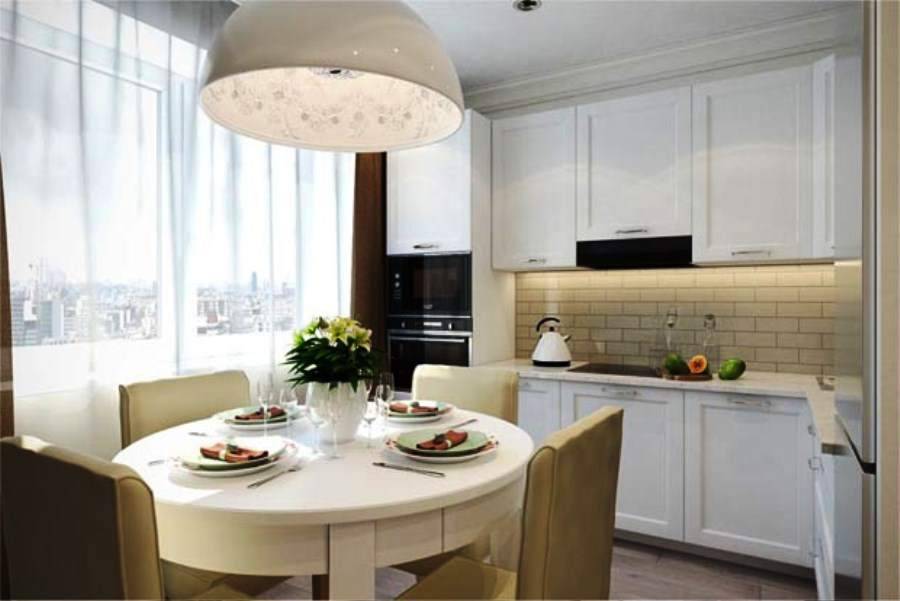 - Общий свет некоторые дизайнеры считают необходимым, однако в условиях небольшой комнаты он может быть заменен люстрой над обеденным столом. На просторной кухне дополнительно можно использовать небольшие светильники в качестве вспомогательного освещения.