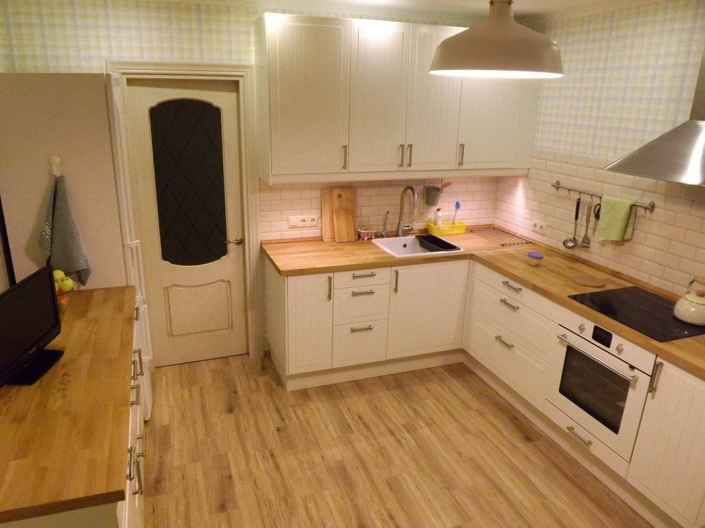Светлые тона стен, гарнитура отражают больше света, чем темные. При одинаковом световом потоке кухня в светлых тонах будет выглядеть светлее.