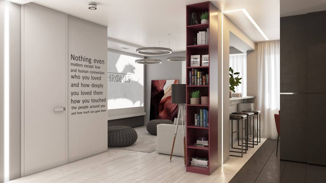 Коридор, или прихожая, независимо от размера, выполняет определённую функцию — встретить и проводить. Здесь чаще всего располагают гардероб для верхней одежды, полочки для обуви и аксессуаров, размещают зеркала. В помещениях побольше ставят пару небольших кресел с журнальным столиком.