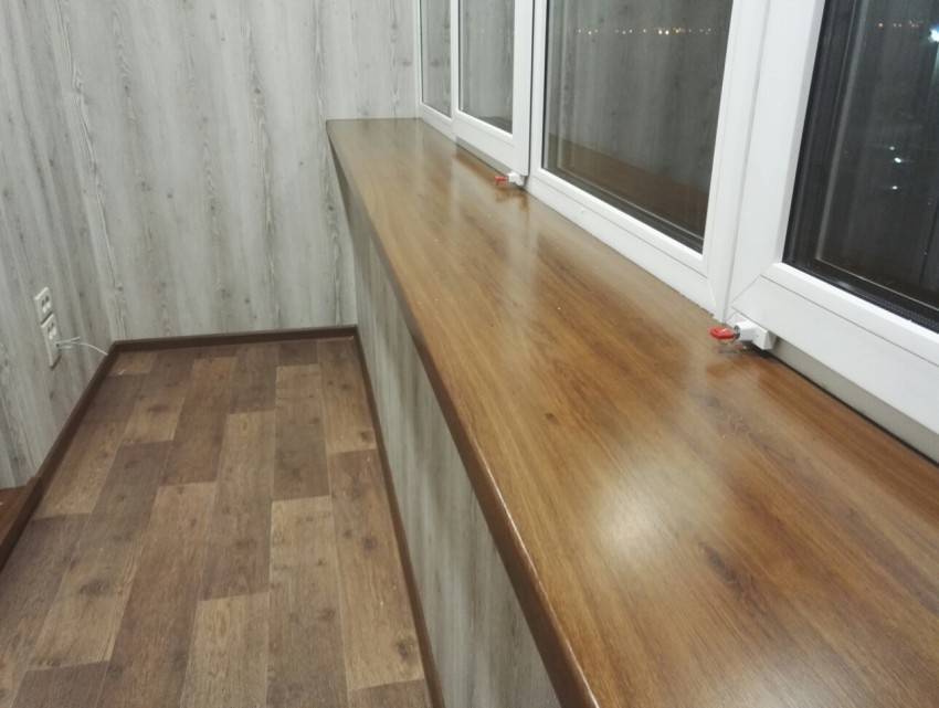 После завершения всех этапов осуществляется обрезка, устанавливаются ПВХ плинтуса, а стыковочные швы на углах заделываются герметиком, обладающим цветом, как у профиля, и балконом можно пользоваться.