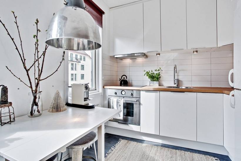 Логично, что такой вид пола недешевый, но он придаст вашей кухне шик и роскошный вид. Пол из дерева на кухне − это достаточно проблематично, так как дерево не любит влажность, поэтому будет уместно скомбинировать деревянный пол с плиткой в зоне готовки.