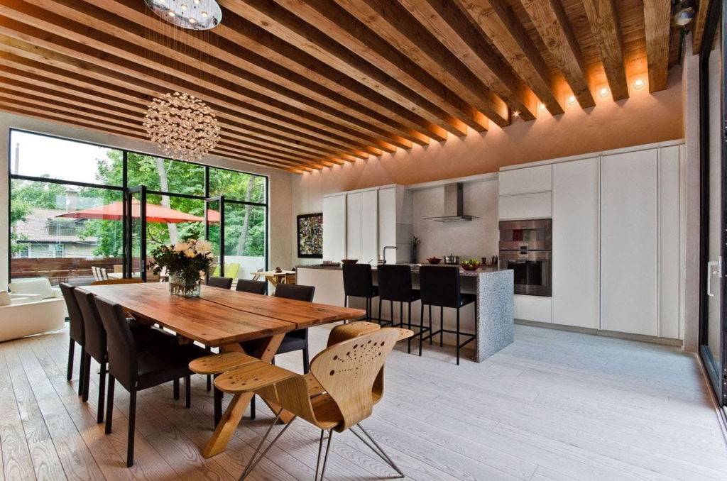 Также можно монтировать перекрытия под деревянными балками, что поможет вам физически увеличить высоту потолка.