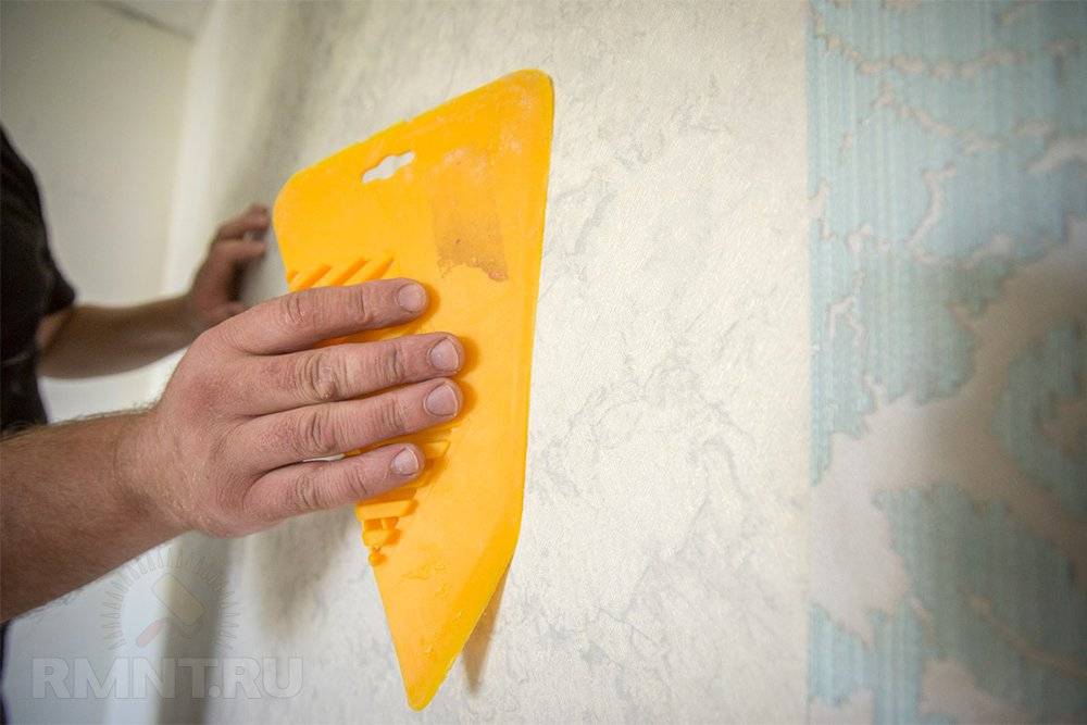 На обоях карандашом отмечают границы отделки и осторожно подрезают канцелярским ножом, оставляя запас под камни шириной 1-2 см. Клей от обоев размачивают водой и снимают шпателем, стены тщательно промывают. Также удаляют краску, если она облупилась или потрескалась, счищают отставшую штукатурку