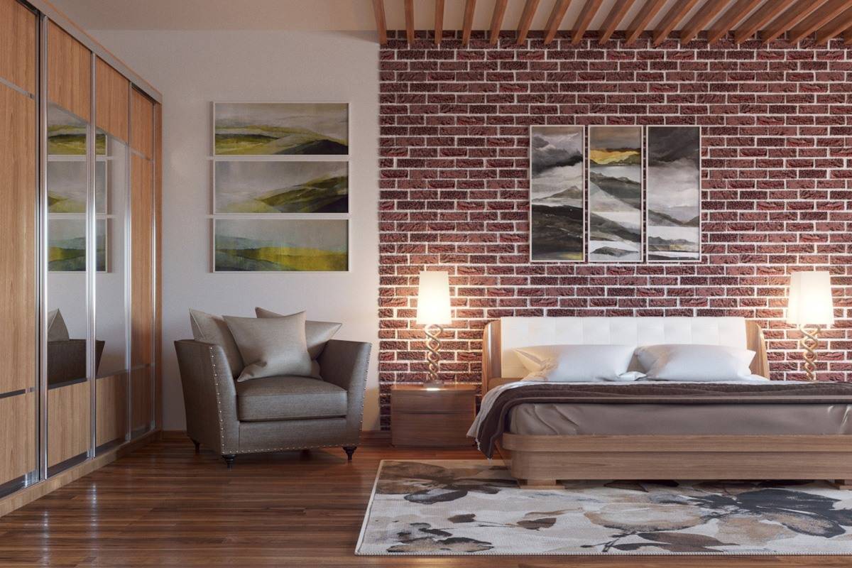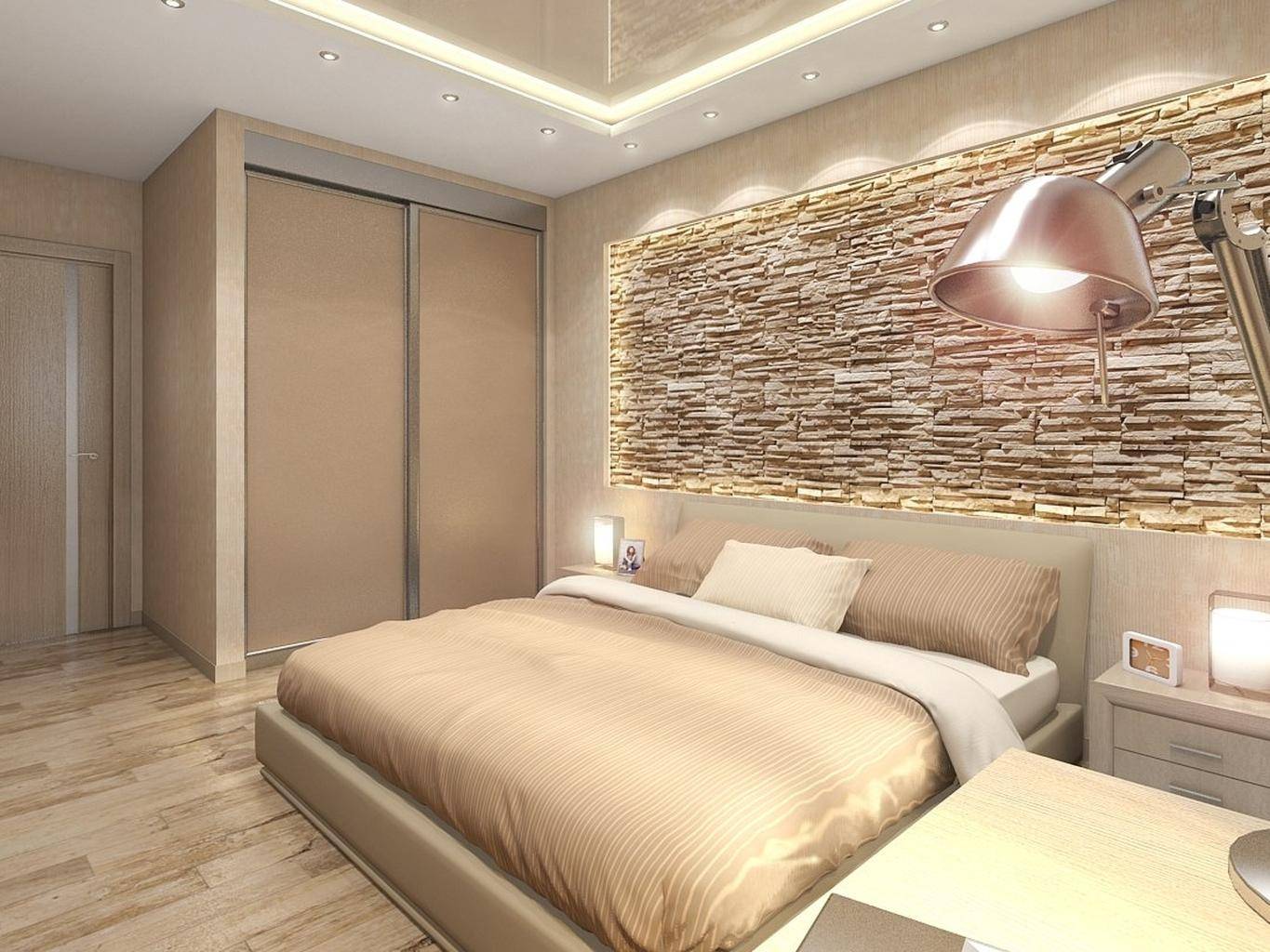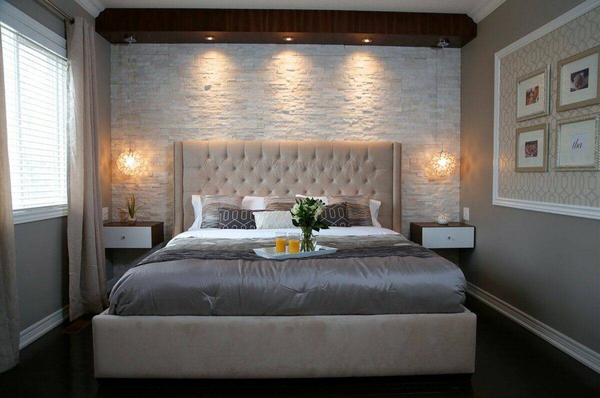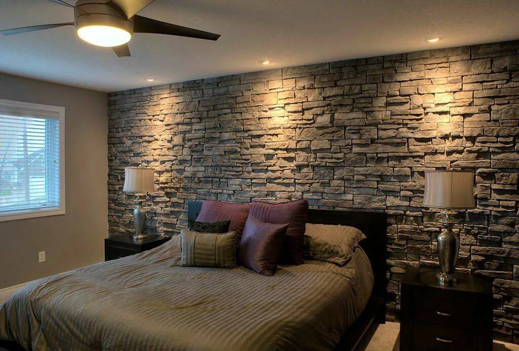 Декоративный камень в спальне — красиво и романтично