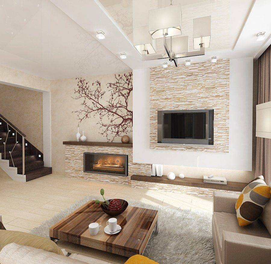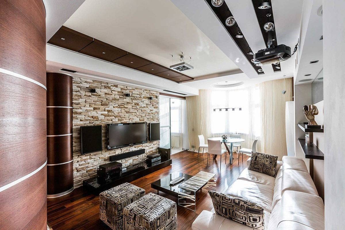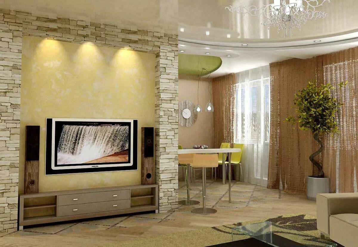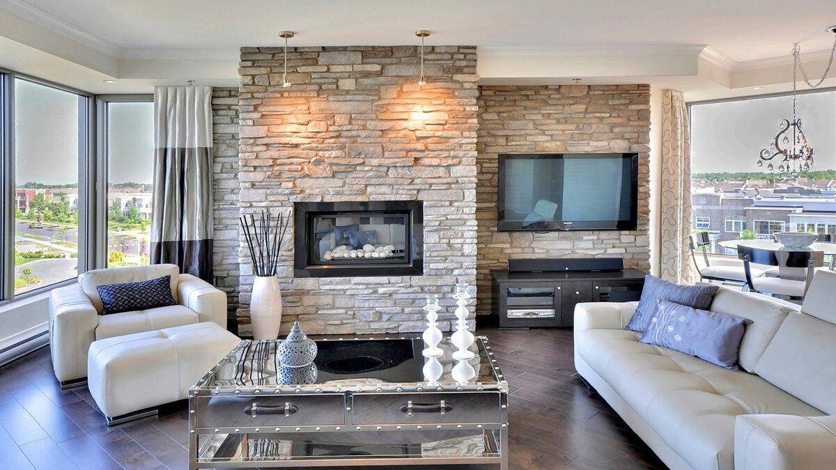СоветПри покупке декоративного камня обратите внимание на его геометрию, отсутствие сквозных отверстий и отдельных фактур с размерами больше 5 мм. Зонируем гостиную и спальню в одной комнате (235+ Фото дизайнов): используем пространство с пользой и удобством