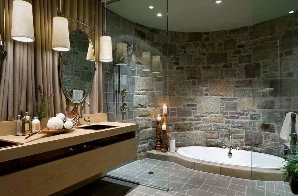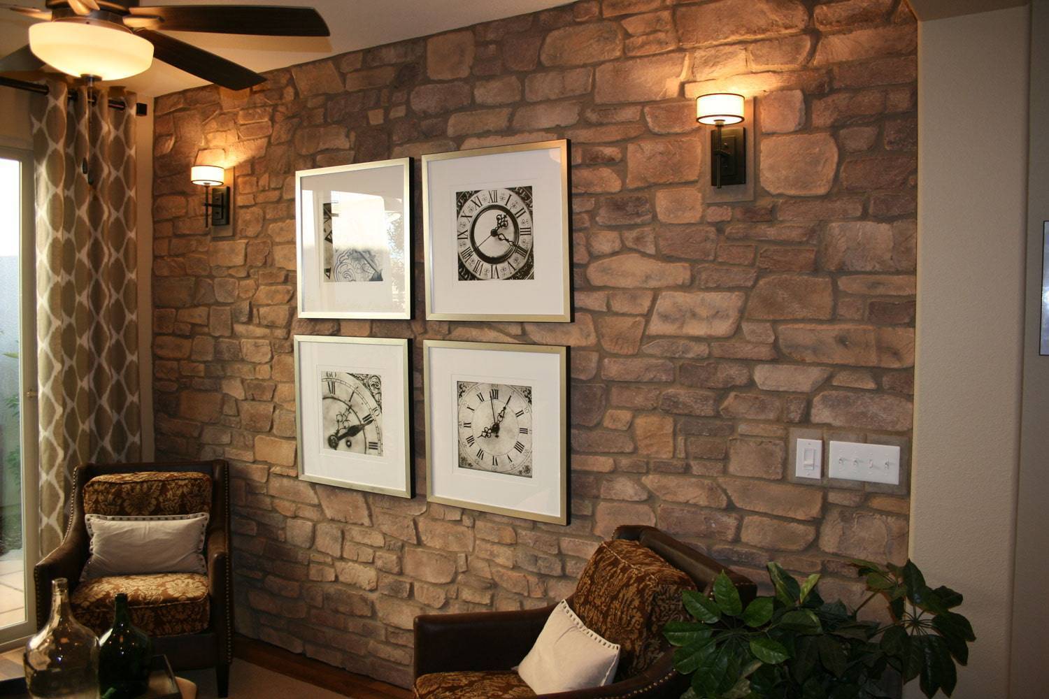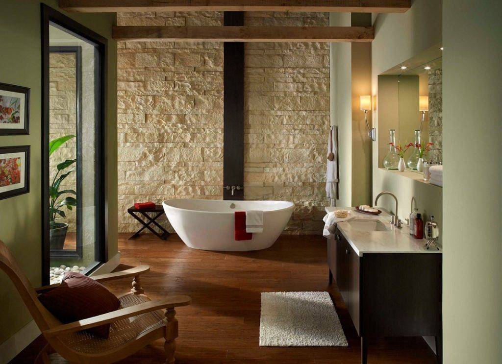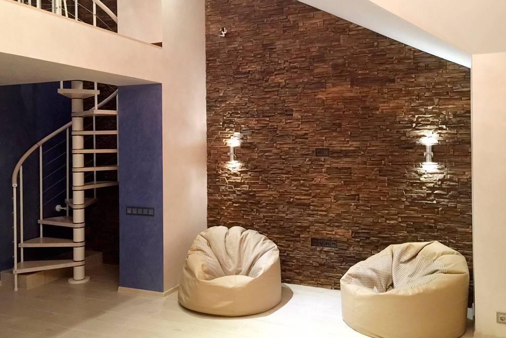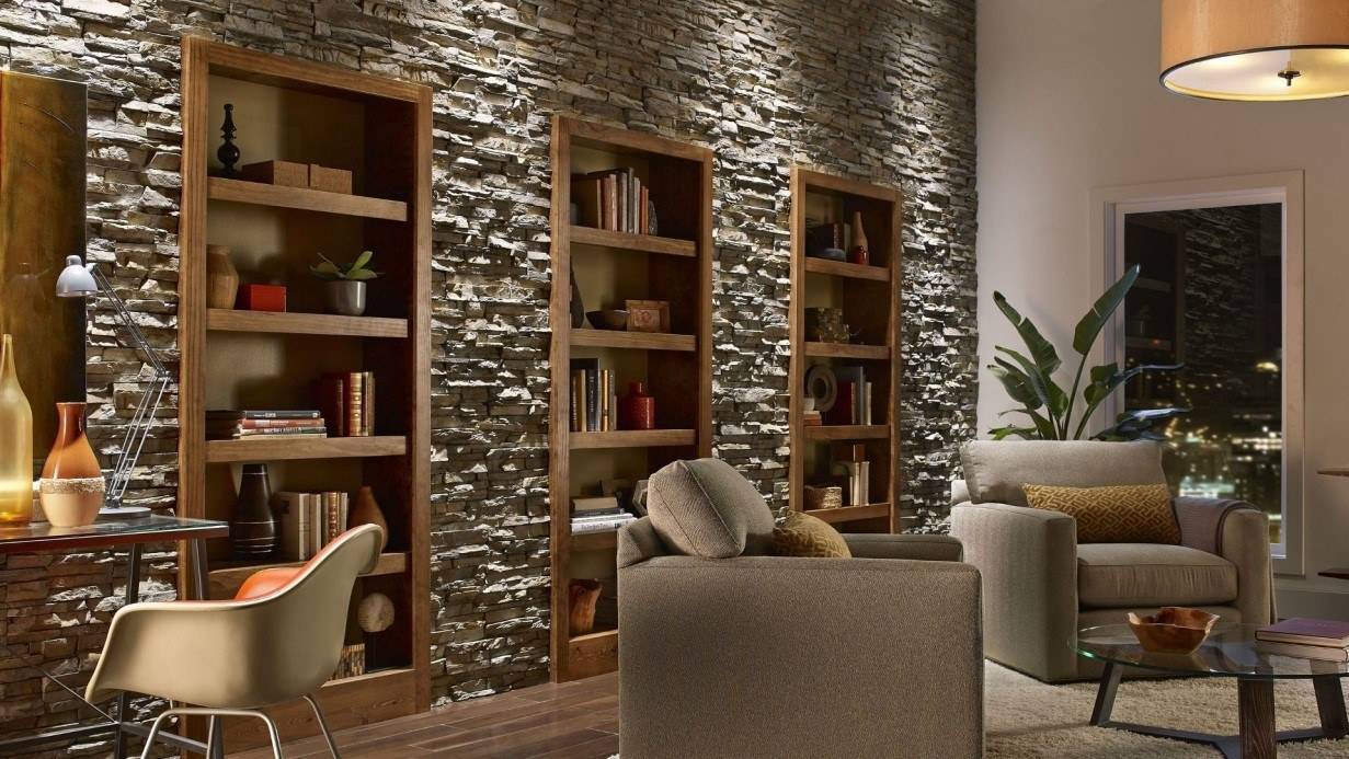 Обои под камень могут использоваться в интерьере большинства стилей. Достаточно добиться их правильного сочетания с элементами декора.