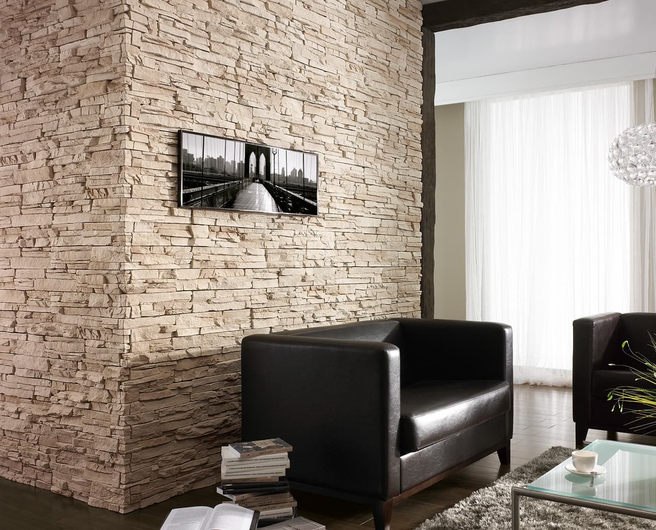1. Какой бы вид вы не выбрали, каменная отделка станет стильным украшением интерьера, а также позволит скрыть несовершенства поверхности стен. Благодаря широкому ассортименту, он вписывается во многие стили, превращаясь в их гармоничное продолжение.