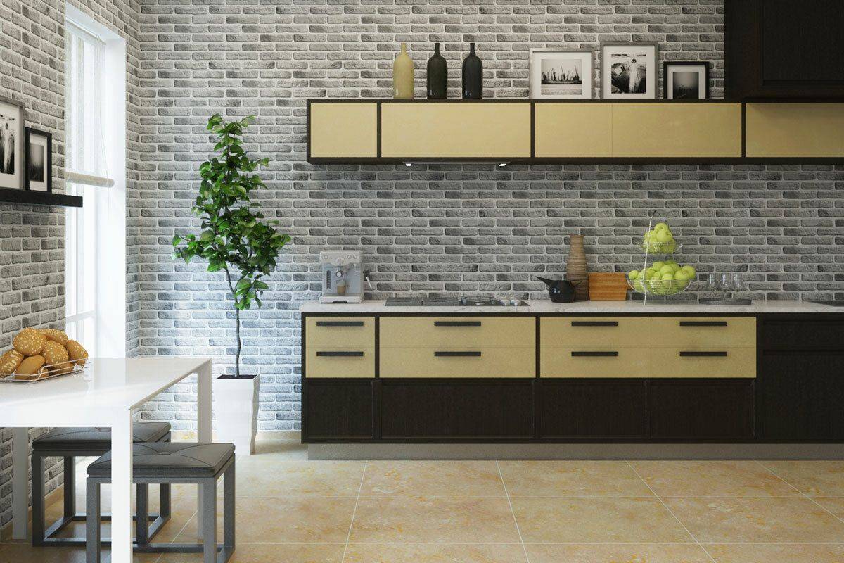 Этот вид отделки способен визуально решить проблемы с площадью помещения. При горизонтальном расположении кладки, более светлых тонах и добавлении контрастных деталей, маленькая кухня зрительно увеличится в размерах. Просторная столовая уменьшится в размерах и станет более уютной, если для отделки ее стен будут выбраны темные расцветки и при этом будет применено точечное освещение или бра.