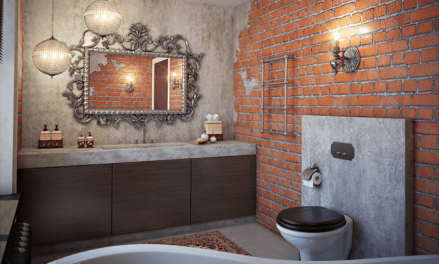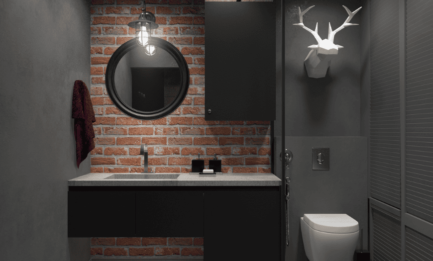 Индустриальные нотки в дизайне с каждым годом становятся все популярнее. Это не удивительно, потому что для современного человека важны не только эстетические, но и практические моменты. Идеальный вариант маленького туалета в стиле лофт – плоские фасады, деревянные элементы, настенный унитаз и отделка одной из стен под кирпич. Это будет выглядеть просто, оригинально и комфортно.