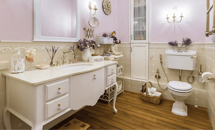 Изящность каждой отдельной детали и светлая цветовая гамма смогут придать маленькому туалету дополнительную легкость и пространство