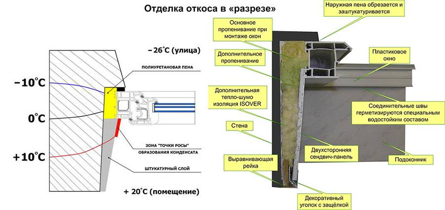 Для наглядности процесса мы приготовили для вас схему отделки откоса в “разрезе”