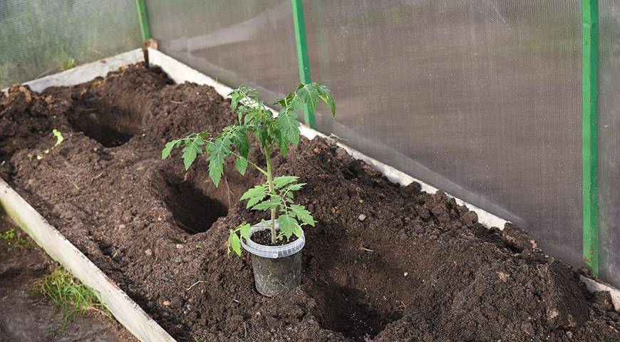 Высадка рассады томатов в поликарбонатную теплицу на вторые майские праздники.