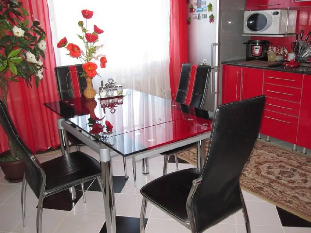 - Стекло — оно элегантно, удобно и просто в уходе. Качественное стекло не царапается. Вопреки внешнему виду, такой вариант стола очень устойчив к поломкам. Тем не менее, он не будет работать на кухне, где нет кухонных столешниц, и на нем будут выполняться все процессы, такие как отбивка мяса, использование бытовой техники.