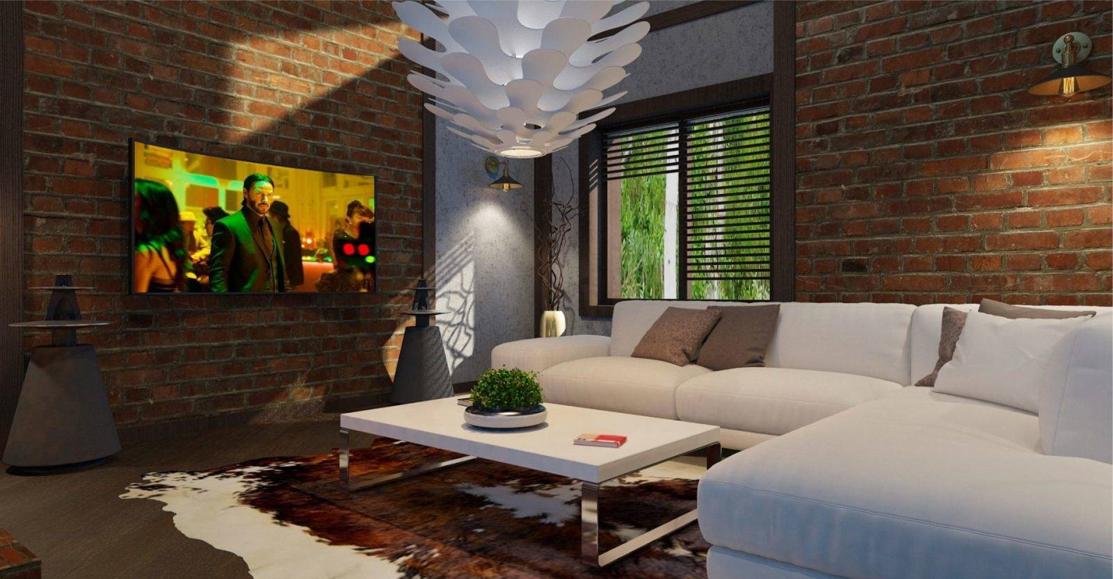 Остальное же место в комнате можно пустить под расположение стола со стульями, кресел с диваном и телевизором, если речь идет о кухне-гостиной.