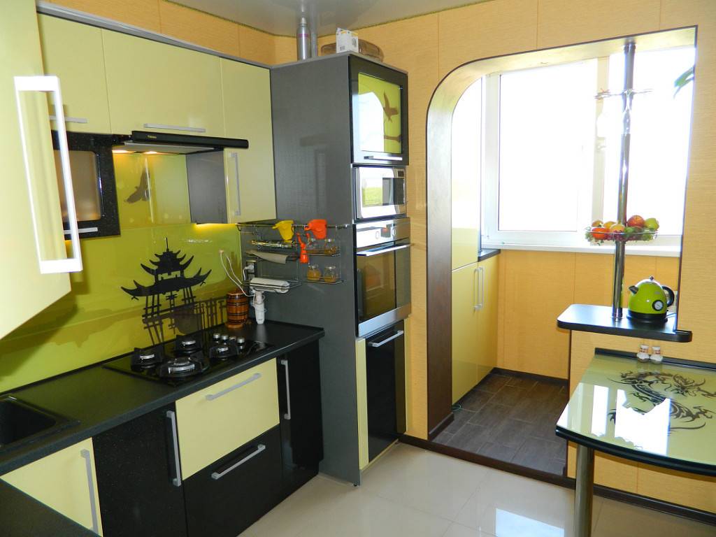 хорошо будет смотреться проект кухни с балконом, на котором расположена небольшая обеденная или рабочая зона;