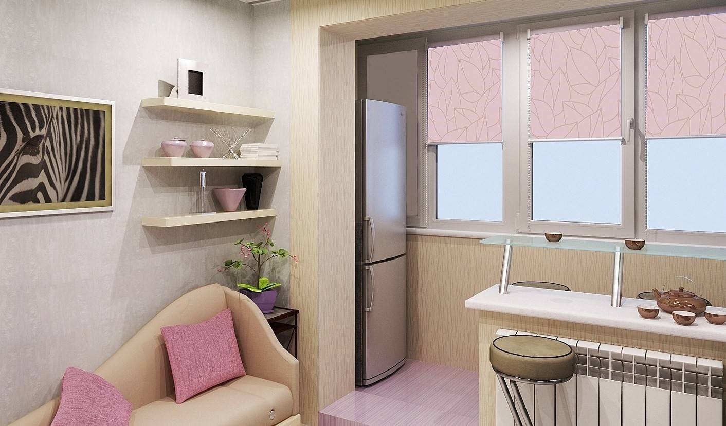 Если есть балкон, можно сделать перепланировку помещения — нужно просто убрать стену. Разрушать ее полностью не стоит, можно оставить нижнюю часть (до подоконника), соорудив из нее барную стойку. Она может выполнять роль обеденного стола, таким образом, на кухне появится больше свободного места.