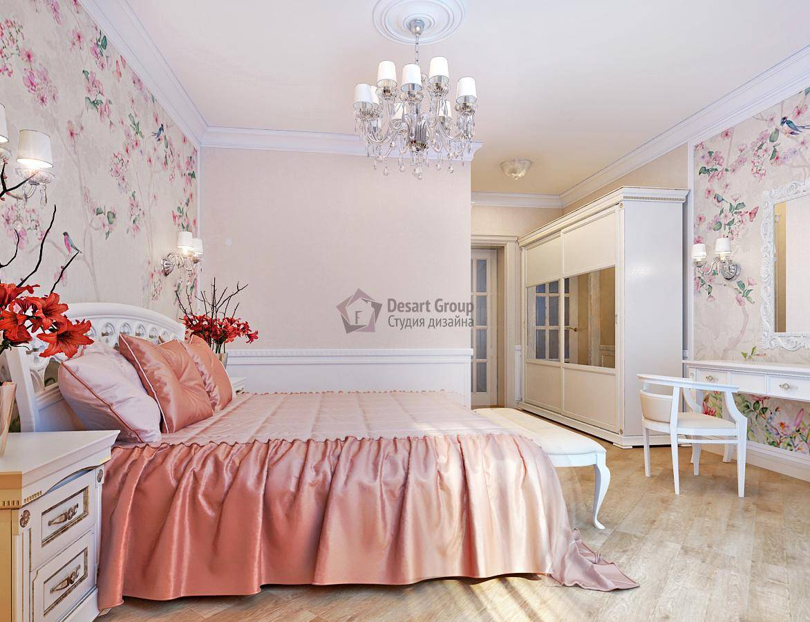 В отделке используются в основном светлые, мягкие тона – допускается использование светло-бежевой гаммы, на полу паркетная доска будет смотреться более уместно. Краску на стенах можно заменить фактурными обоями белого цвета.