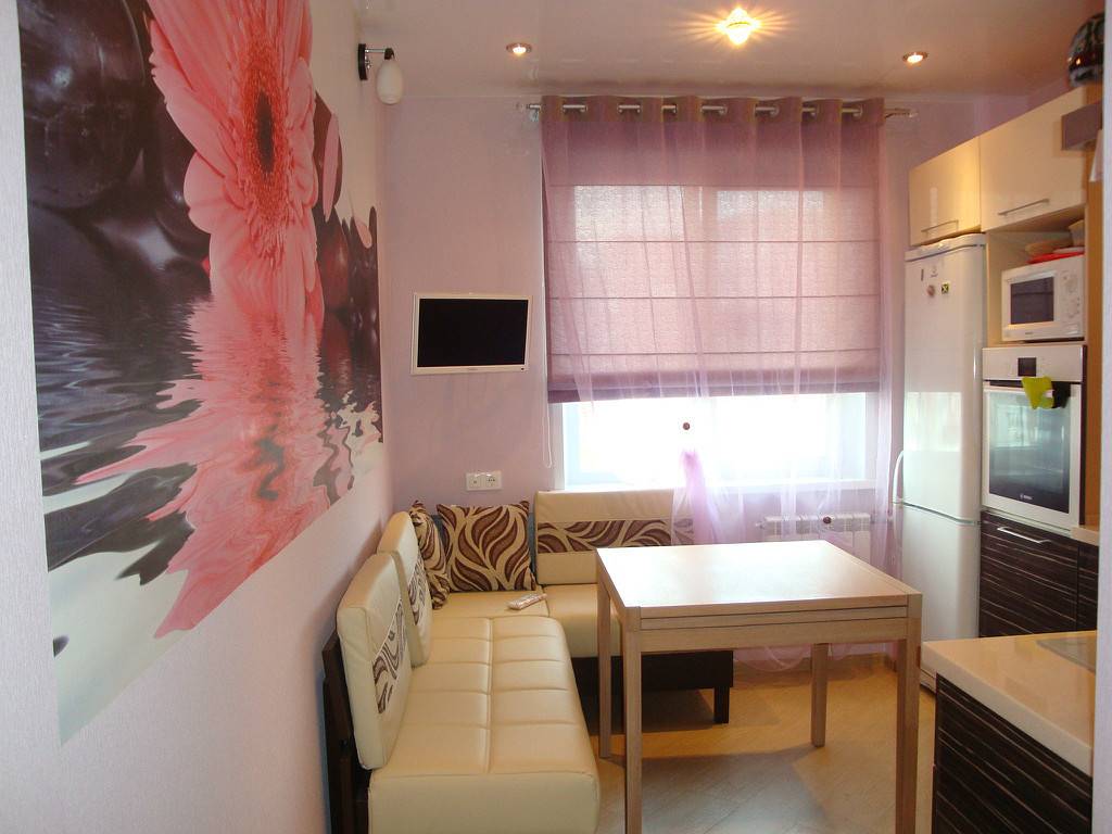 Если одна из стен остается полностью свободной (как правило, возле обеденной зоны), там стоит поклеить фотообои с реалистичной перспективой — так ваша 12-метровая кухня будет выглядеть просторнее.