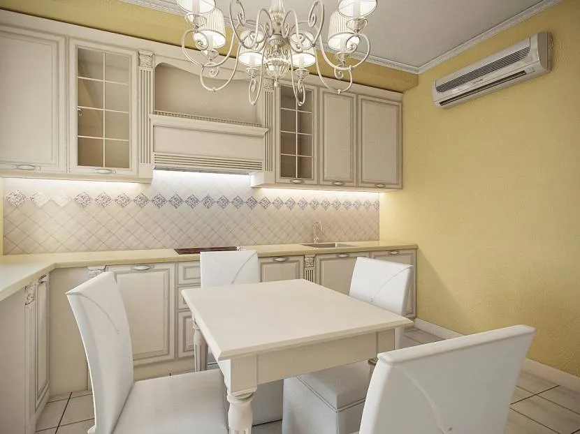 Чтобы не загромоздить маленькую кухню, лучше отказаться от лепнины, резьбы, вычурности.