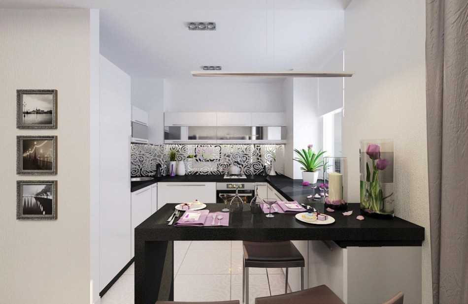- позволяет зонировать пространство, разделив кухню на 2 зоны: рабочую и обеденную