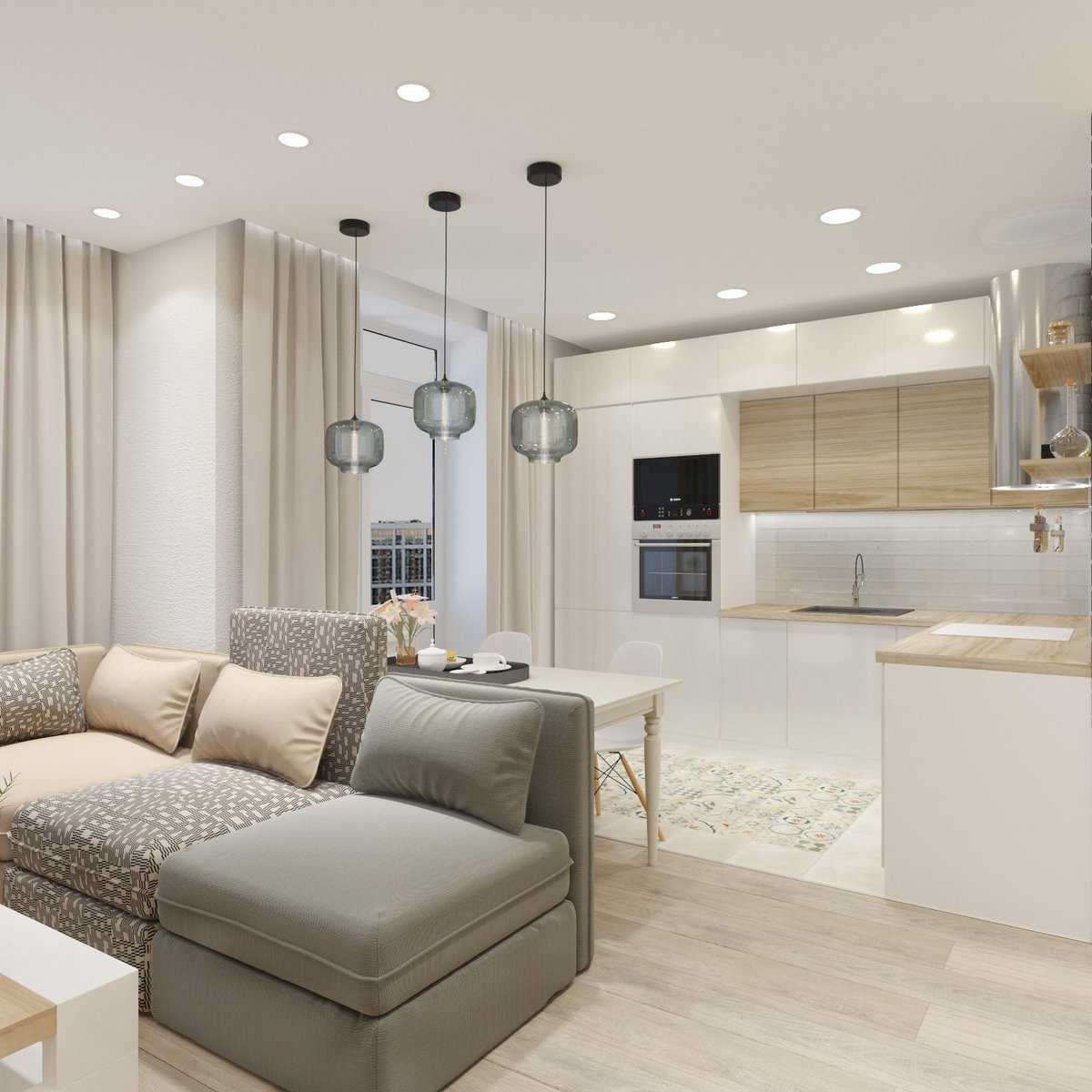 Итак, у нас гостиная-кухня площадью 20 квадратных метров с диваном, необходимо выбрать стиль. Просмотрите варианты фотографий и выберите подходящую.