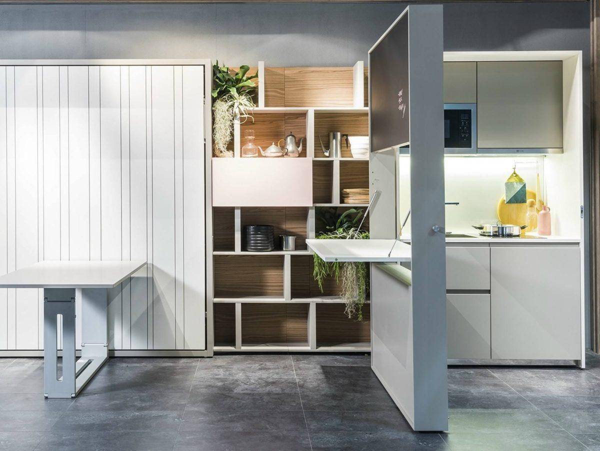 Раздвижные конструкции. Разнообразные ширмы, раздвижные двери и стационарные перегородки помогают спрятать кухню от посторонних глаз. Незаменимая вещь, если в доме случаются гости, которых вряд ли вдохновит перспектива спать на кухне.