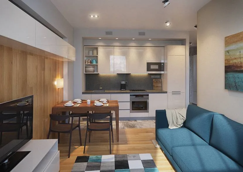 Рассмотрим наиболее распространенные формы, в которых может быть спроектирована кухня-гостиная площадью 20 квадратных метров.