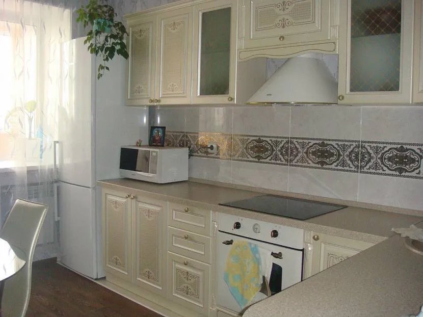 Кухни п-образные предполагают два решения для холодильника: современный встраиваемый или классический.