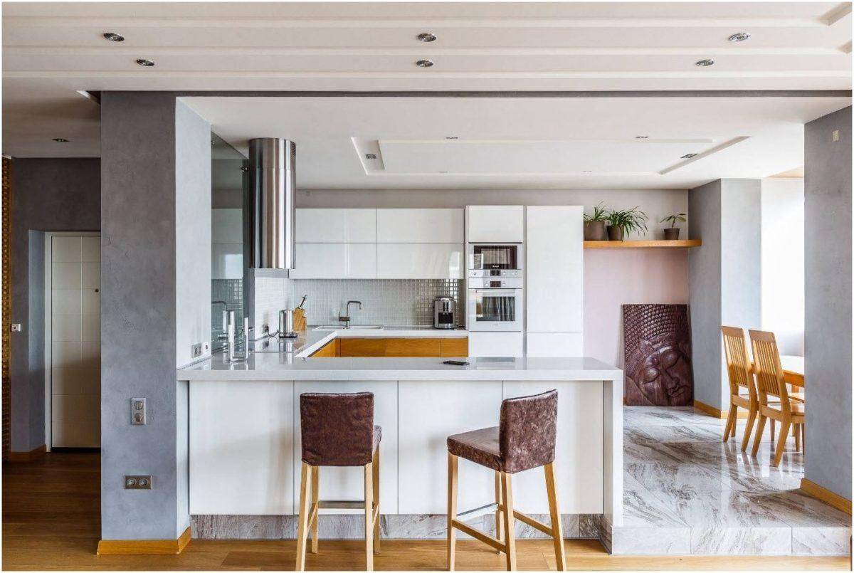 Барная стойка может быть внутри мебели в форме п, находясь на уровне столешницы или располагаться выше, привлекая внимание. Необязательно размещение стойки с краю — встроенная в мебель она может находиться напротив окна