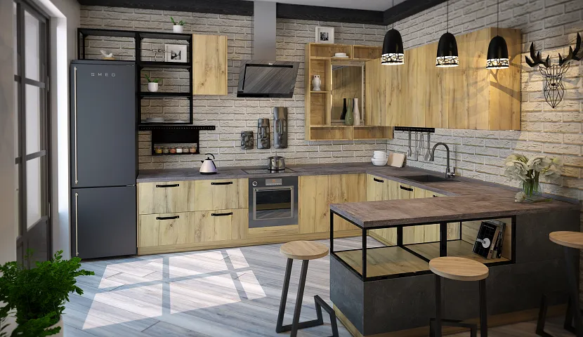 - Трудности с подбором кухонной мебели — такие фасады приходится изготавливать на заказ.