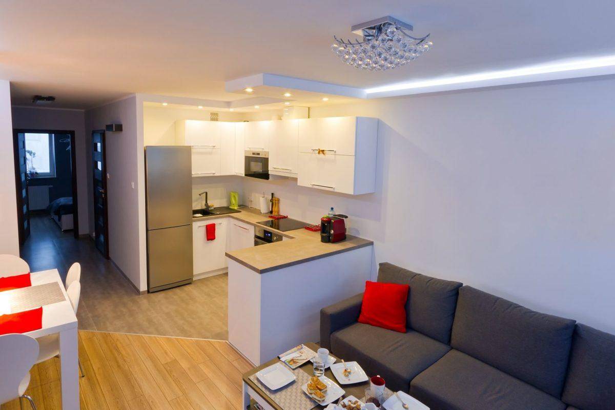 Если же вы попали в этот небольшой процент счастливчиков, то совмещенная с гостиной кухня в виде буквы П – будет прекрасным вариантом. Но, всё равно, прежде чем сносить стену – сделайте чертёж и рассчитайте всё до сантиметра.
