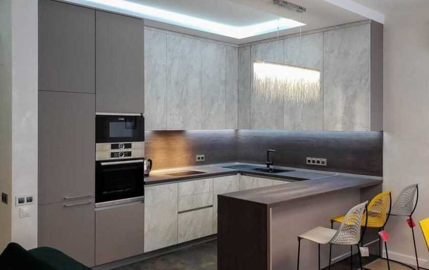 поскольку кухня – это одно из самых загрязняемых помещений в доме, стоит учесть это и при выборе отделочных материалов. Например, на белоснежных, как и на глянцевых черных панелях, будут видны все брызги