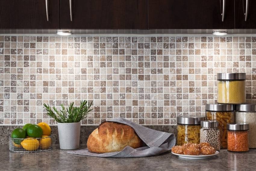 Плитка – проверенный способ отделки стен. Однако он очень трудозатратный и требует больших вложений, ведь уложить все стены керамикой – удовольствие не из дешёвых. Обычно владельцы квартиры выбирают оптимальный вариант, отделывая керамической плиткой только «фартук». Рабочая область выглядит аккуратно и красиво, при этом легко можно помыть после готовки.