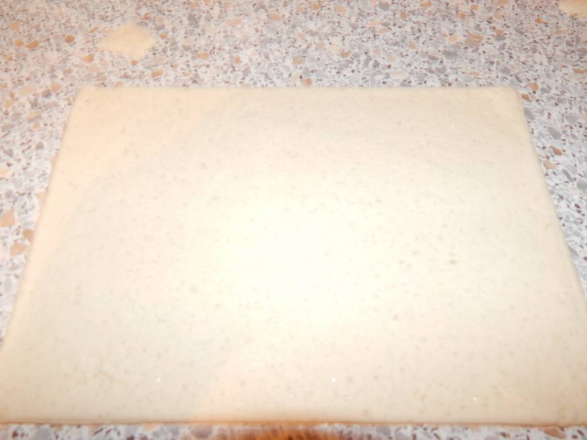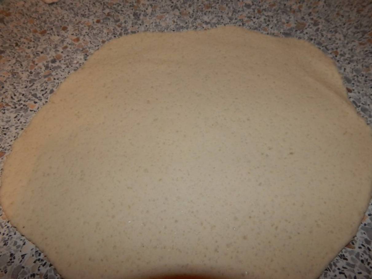 Замешиваем тесто, строго соблюдая пропорции. Раскатываем на столе.