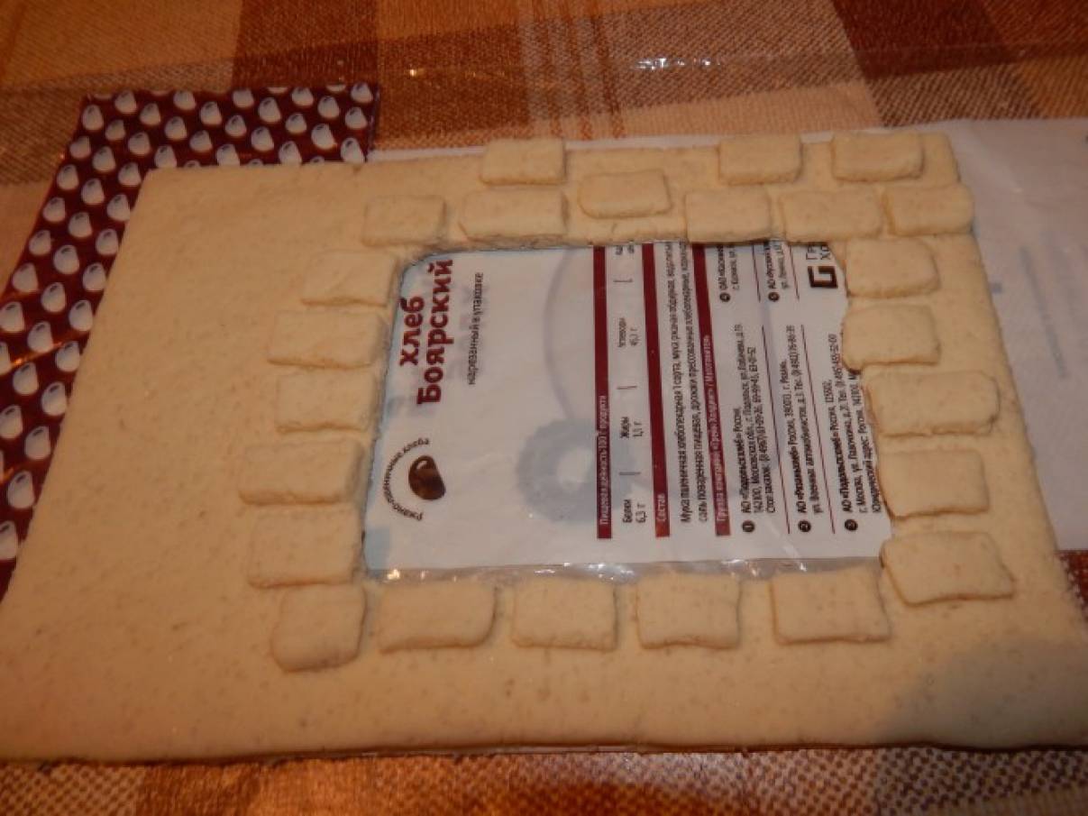 Из теста нарезаем ровные прямоугольники (модно разной формы) для оформления рамки.