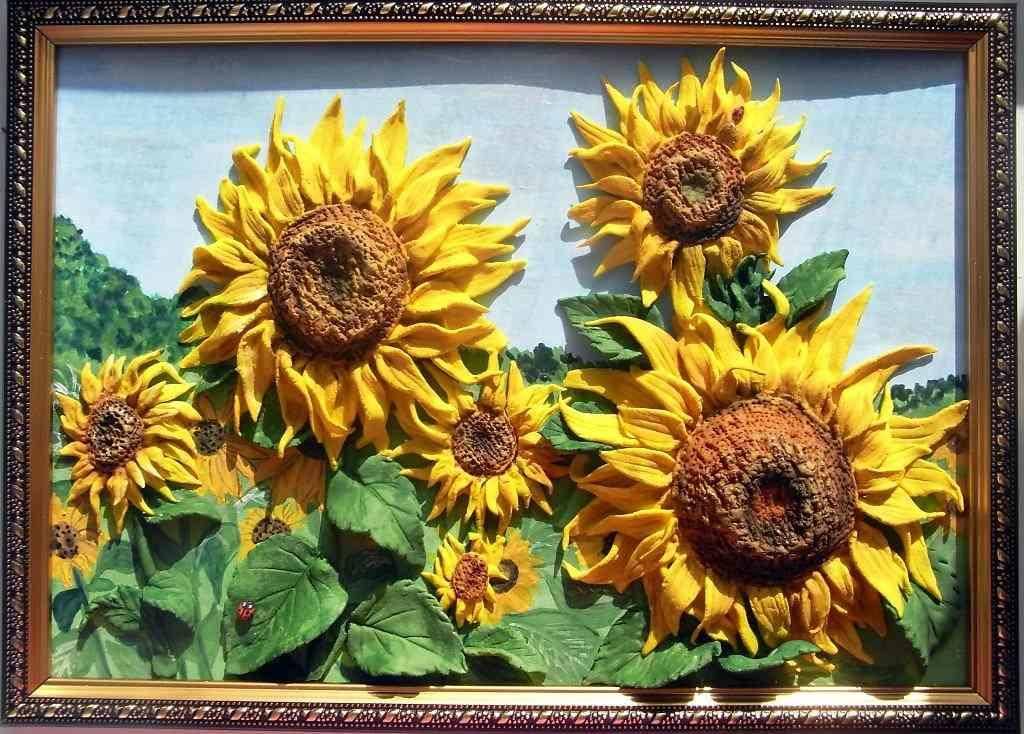 Давайте начнем с самого простого мастер-класса, который может освоить любой школьник. Мы расскажем Вам, как пошагово сделать панно из очень даже съедобного соленого теста «Подсолнухи».