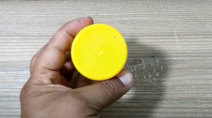 Из пластмассовой крышки от использованного дезодоранта получилась отличная подставка. Сначала ее немного доработали. В середине крышки было сделано отверстие, по диаметру подходящее точно под шпажку.