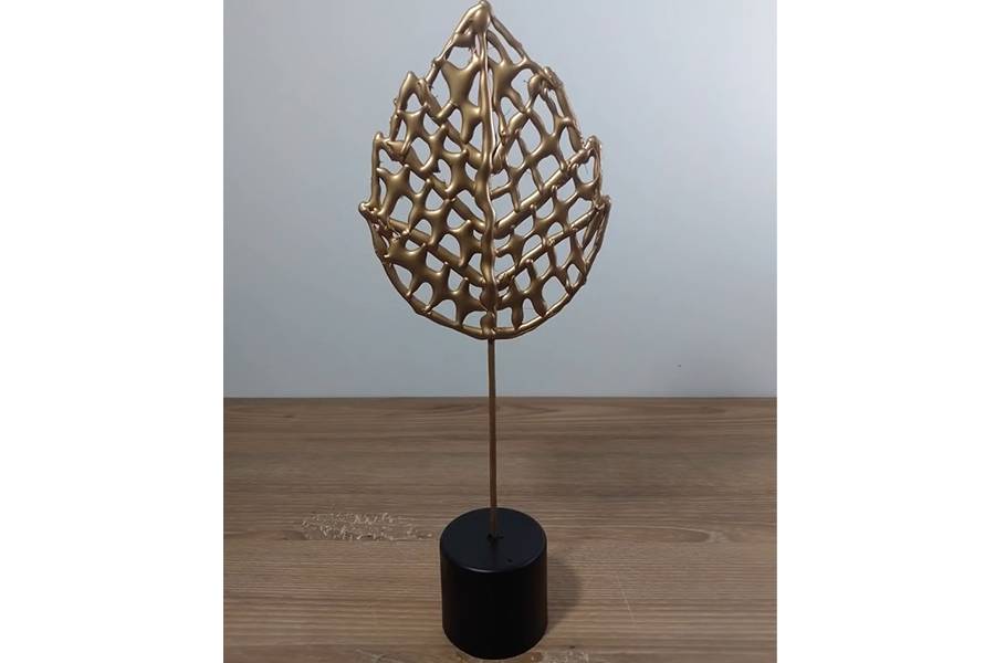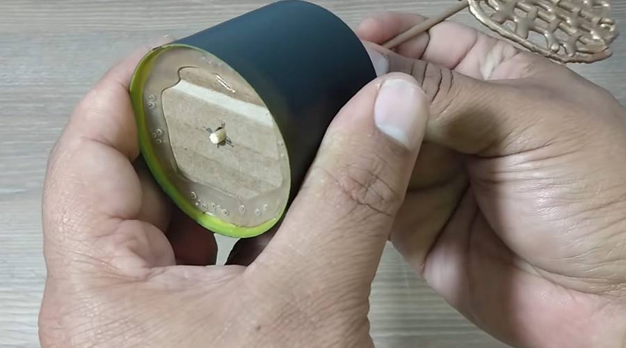 Чтобы подставка выглядела красивее, ее окрасили в черный цвет. Когда краска полностью высохла, золотистый листок вставили в подставку.