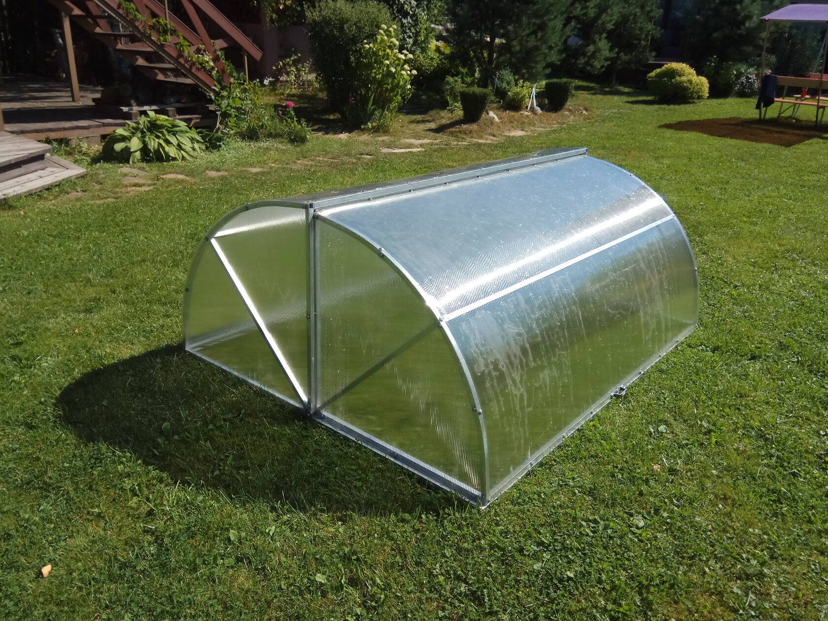 Предназначение — выращивание теплолюбивых культур на улице, ранняя посадка овощей. Достоинство — легкая сборка.